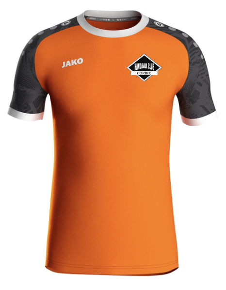 MAILLOT ADULTE ORANGE FLUO/NOIR ICONIC (+LOGO CLUB COEUR)